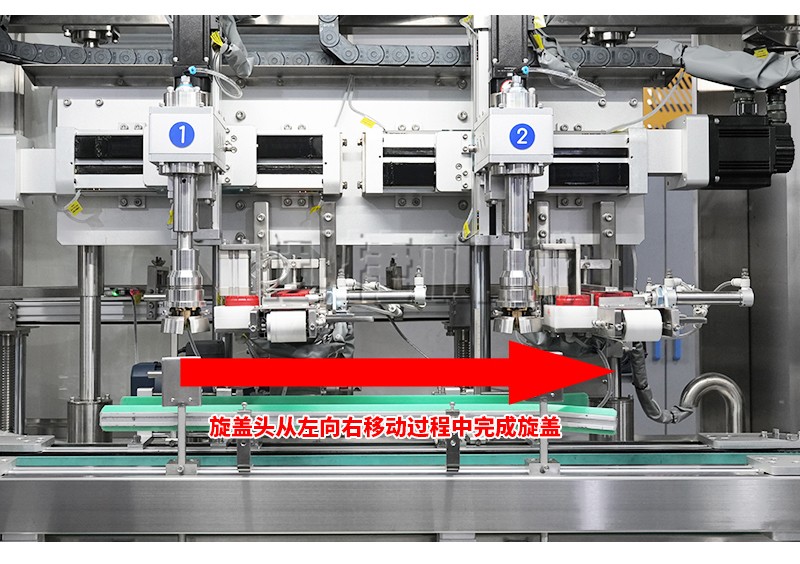 2、品質(zhì)高:跟隨式旋蓋,旋蓋過(guò)程不停頓,不晃液,不污染瓶口、瓶身及輸送帶,確